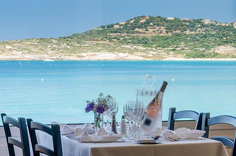 En salle ou en terrasse, le restaurant à la carte et le restaurant demi-pension vous invitent à apprécier la vue imprenable sur la mer et la baie d'Algajola.